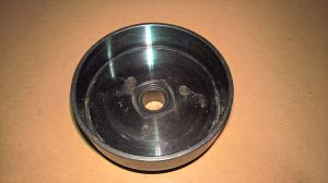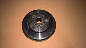 Genuine IAME early-type (3-hole-sprocket) Leopard clutch drum part # A-60550 with mounted genuine IAME 11T sprocket part # D-75555 . Both show only very light use and are rated in Excellent condition.