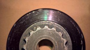 Both are used, drum shows virtually no wear. The sprocket has one moderately-damaged tooth (see photo); the remaining teeth show ~25% worn / ~75% life remaining.