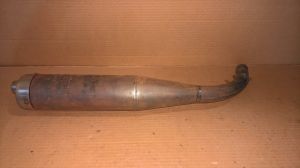 Genuine IAME Mini Swift pipe, part # 61715 . Used has one dent in the chamber area and scraping on the removable end cap (see photos), but in good working condition.