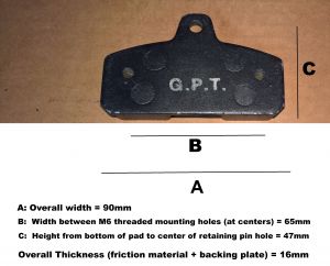 One pair (2 pieces) brand new genuine GPT brake pads, to fit Tony Kart BS-1 & BS-2 rear brake calipers.