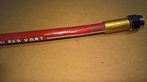 Nylon inner line with inox steel braid reinforcement, covered by a rubber outer sheath.
