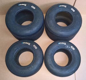 Set of (4) Evinco (MG) SKH2 compound tires, used for one practice day, in good working condition.