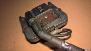 NEEDS WORK: See photo -- The crosspole ("ground") wire is broken off flush. Otherwise in good condition.