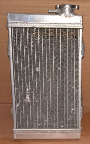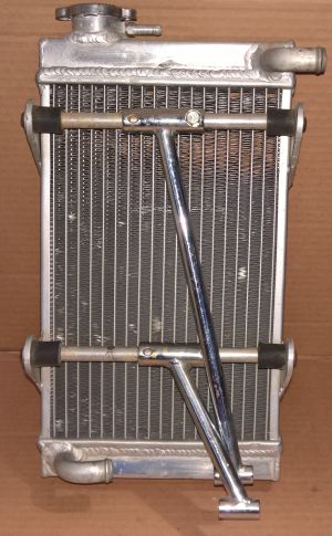 OEM PRD Fireball aluminum radiator, lightly used in Excellent condition. Includes pressure cap and complete mounting bracket kit. The rubber mounting isolators are intact but show wear and may need to be replaced soon.
